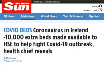 愛(ài)爾蘭衛(wèi)生部負(fù)責(zé)人宣布將增加10,000張床位以幫助抵抗疫情,并同時(shí)在體育館和大學(xué)建設(shè)大型醫(yī)院,盡快滿足普通病患醫(yī)療需求。