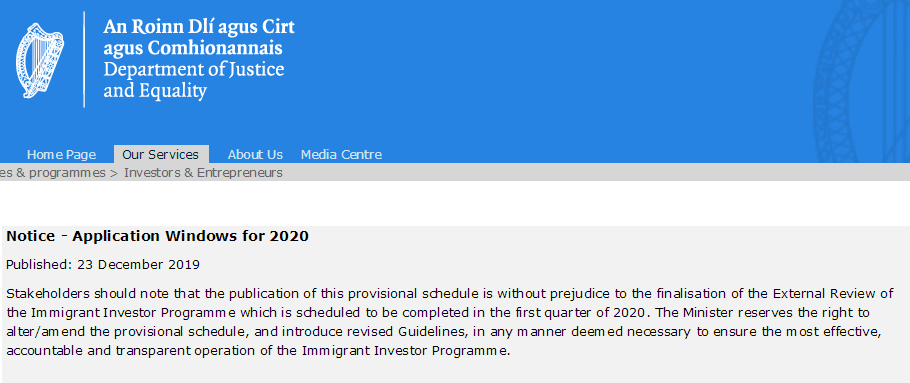 2020愛爾蘭投資移民申請(qǐng)窗口公布