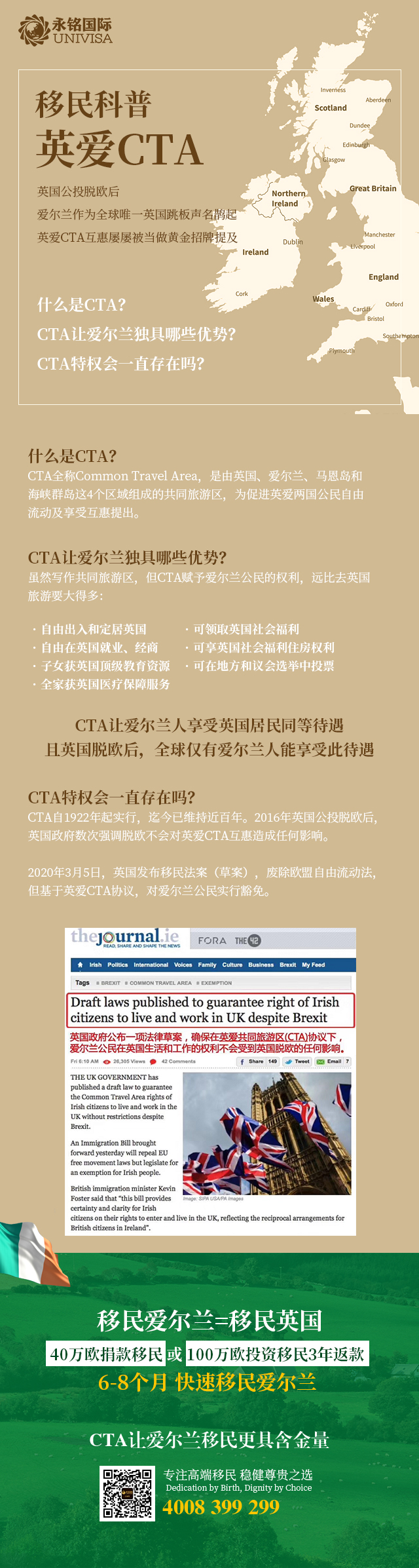 英脫歐過渡期結束后,愛爾蘭成為歐盟27國里唯一能夠維持在英權益不變、連接英國與歐盟的國家,對愛爾蘭來說還是能提升歐盟話語權的絕佳機遇。這主要歸因于英國與愛爾蘭簽訂的CTA互惠協議,它讓英、愛兩國公民可以互享自由定居、工作、學習、社會福利等特權。