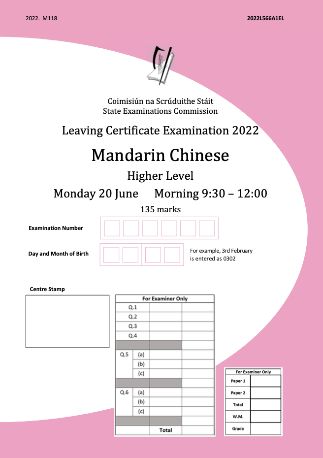 來,直接看愛爾蘭中文高考原卷吧