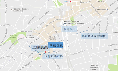 商鋪緊挨著富人區(qū),位置便利,離卡梅爾菜市場100米,離奧爾塔圣家堂學(xué)校600米。