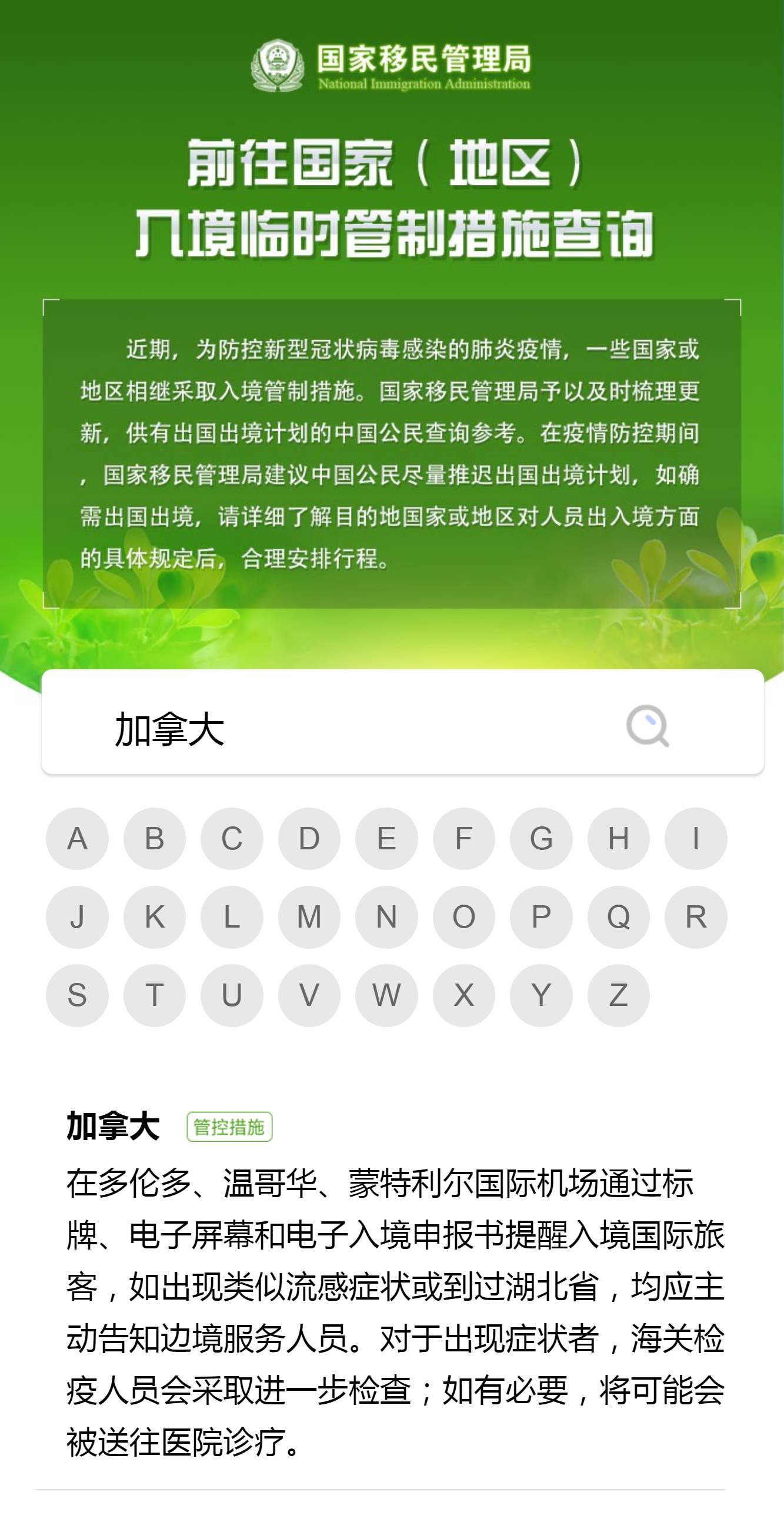 點擊“前往國家地區入境臨時管制措施查詢”,輸入您要去的國家或地區名稱,可以查到該國家或地區目前采取的臨時入境管制措施。想去哪里先查詢,查完再想去不去。