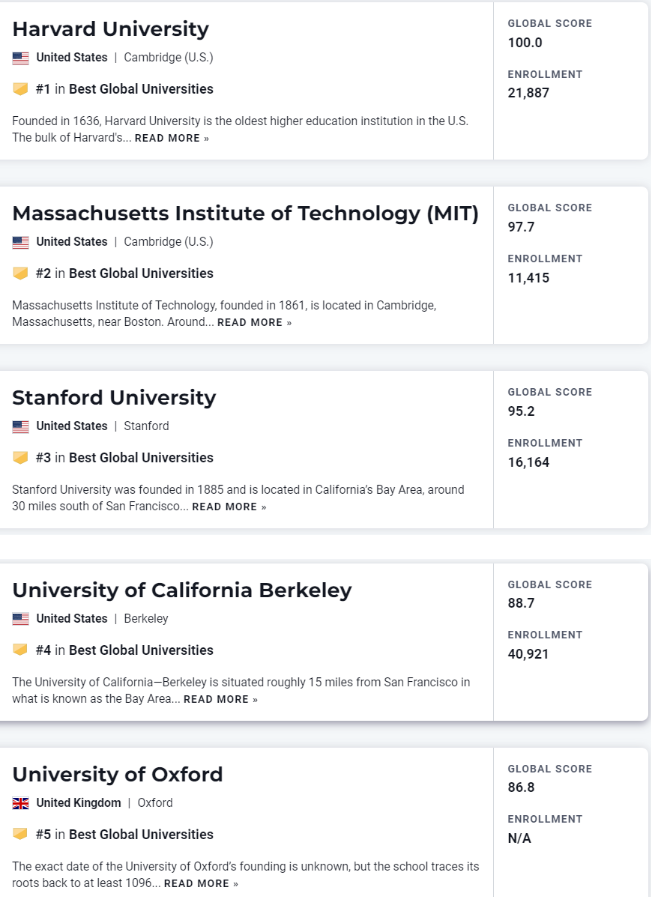 2023U.S.News世界大學(xué)排名出爐