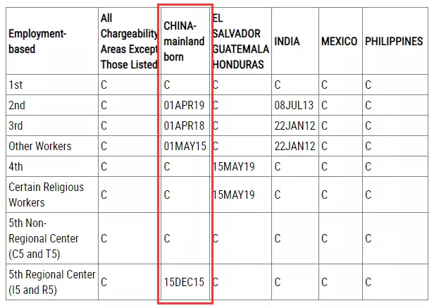 ·EB-5直投類別無排期;EB-5區(qū)域中心類別停滯在2015年12月15日。