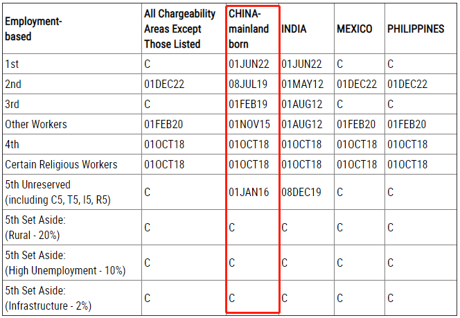 EB-5預留類別(鄉村項目、高失業率項目、基建項目):無排期