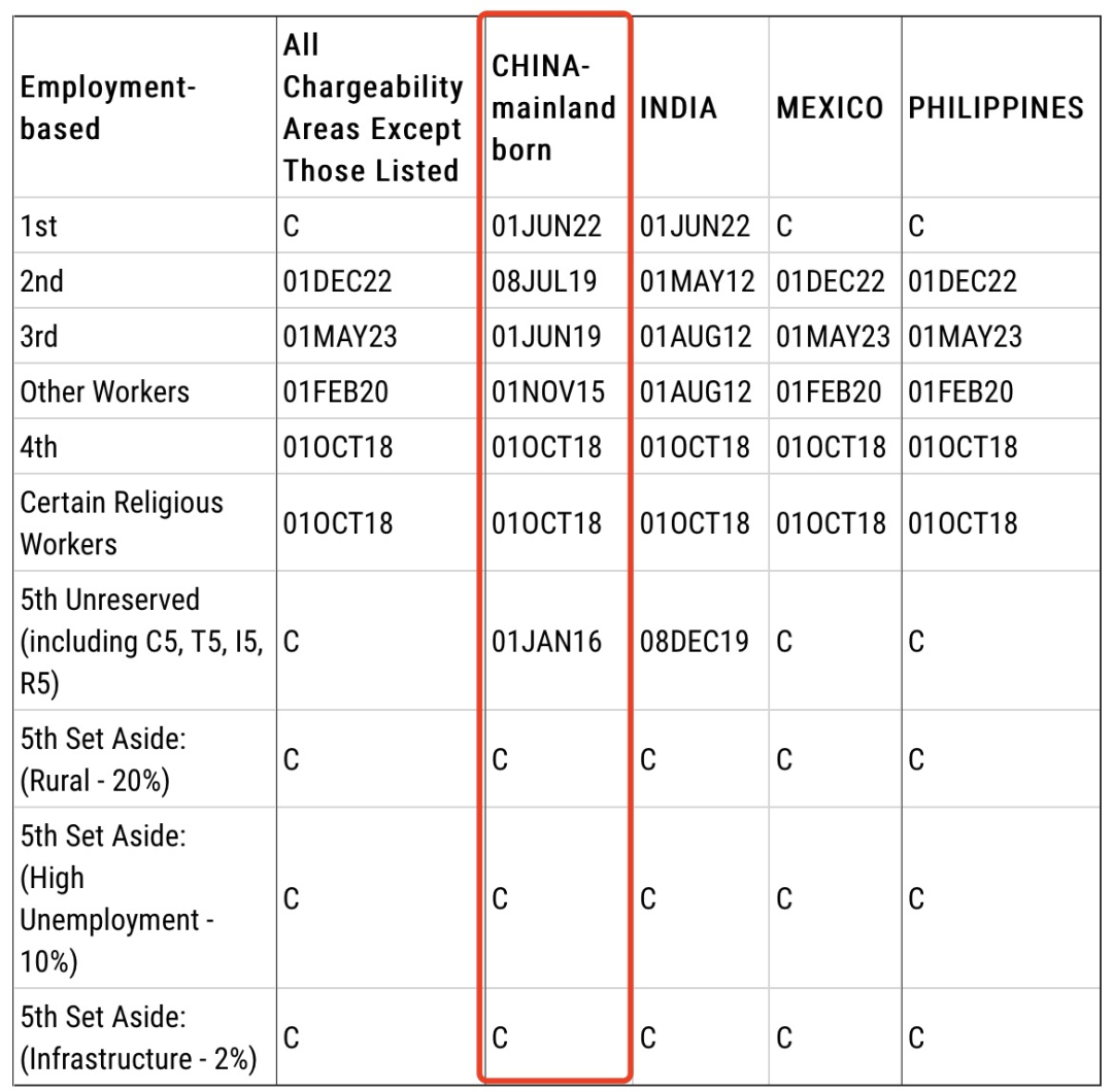 美國5月移民排期公告出爐