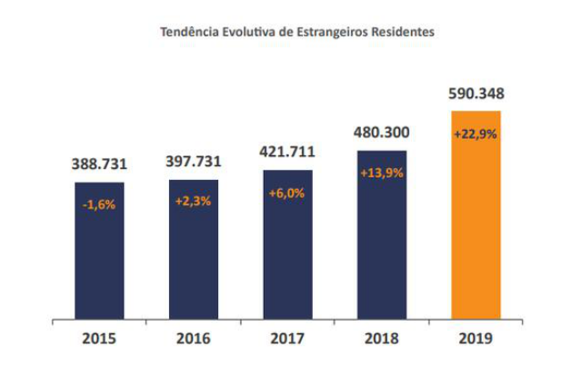 近日,葡萄牙移民局(SEF)發布最新版《移民、邊境和庇護報告》(RIFA),報告顯示,葡萄牙外來移民總人數達590,348名,創下自1976年以來的最高值。